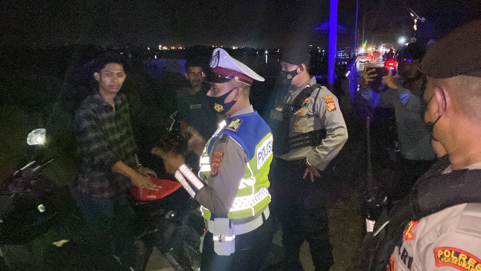 Kabarposnews.co.id I LHOKSEUMAWE - Cegah balap liar selama bulan suci Ramadhan, Tim Unit Reaksi Cepat (URC) Siagam bersama Satlantas Polres Lhokseumawe melakukan patroli di seputaran Waduk Kota Lhokseumawe, Jumat (29/4/2022) malam.